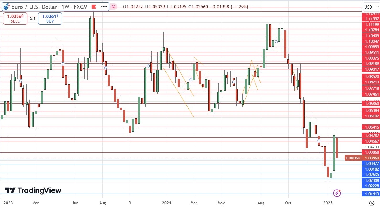 Gold advanced last week to reach a new all-time high above $2,800 per ounce. The price gave up some of its gains towards the weekly close to end the week back below the round number of $2,800. However, looking at the weekly price chart below, we can see that the price closed above the previous record high made in December 2024.
