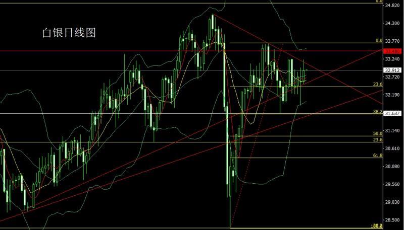 白银:今日如果先回落32.7多止损32.5,目标看33和33.2-33.3压力如果破位的话今日看33.5压力点争夺。